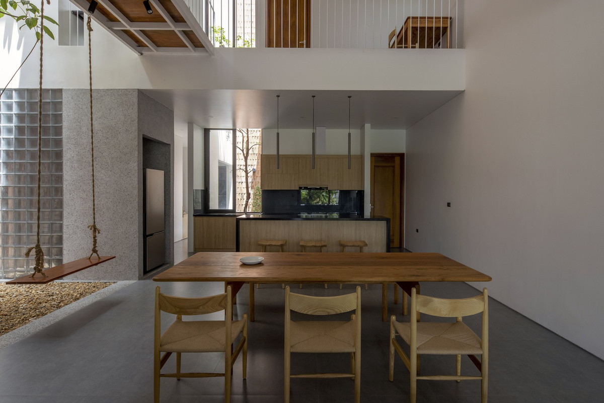 Người thiết kế đề nghị giảm diện tích xây dựng để tạo thêm không gian khiến căn nhà có thêm nhiều khu vườn, không gian trống để tối đa hóa sự hòa nhập giữa các thành viên trong căn nhà.