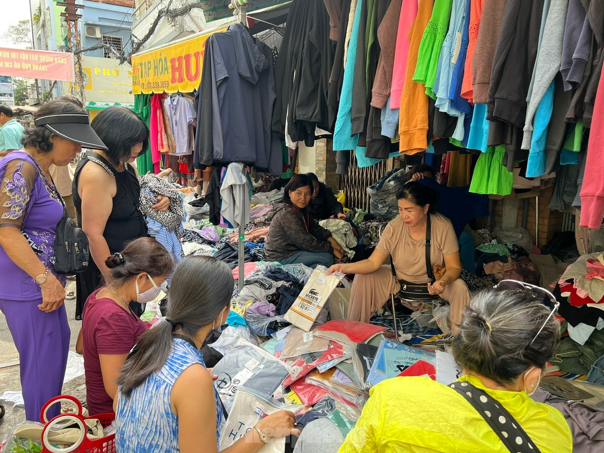 Quần áo được chất đống trên tấm bạt trải ngay mặt đường, khách có thể ngồi hàng giờ liền để xới tung đống đồ, chọn những chiếc áo quần thấy vừa mắt. Người bán cũng không nề hà chuyện phụ khách tìm hàng ưng ý và luôn tay đảo trộn quần áo từ dưới lên để khách dễ dàng tìm kiếm.