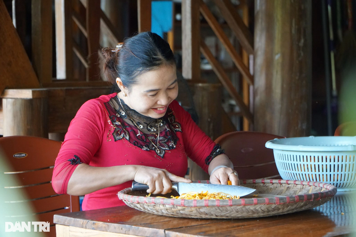 Cuối cùng là thái nhỏ phần vỏ quýt hoi, phơi qua nắng rồi cho lên chảo để rang vàng. "Đây là công đoạn rất quan trọng. Vỏ quýt sau khi rang khô sẽ có mùi thơm đặc trưng", chị Hoài cho biết thêm.