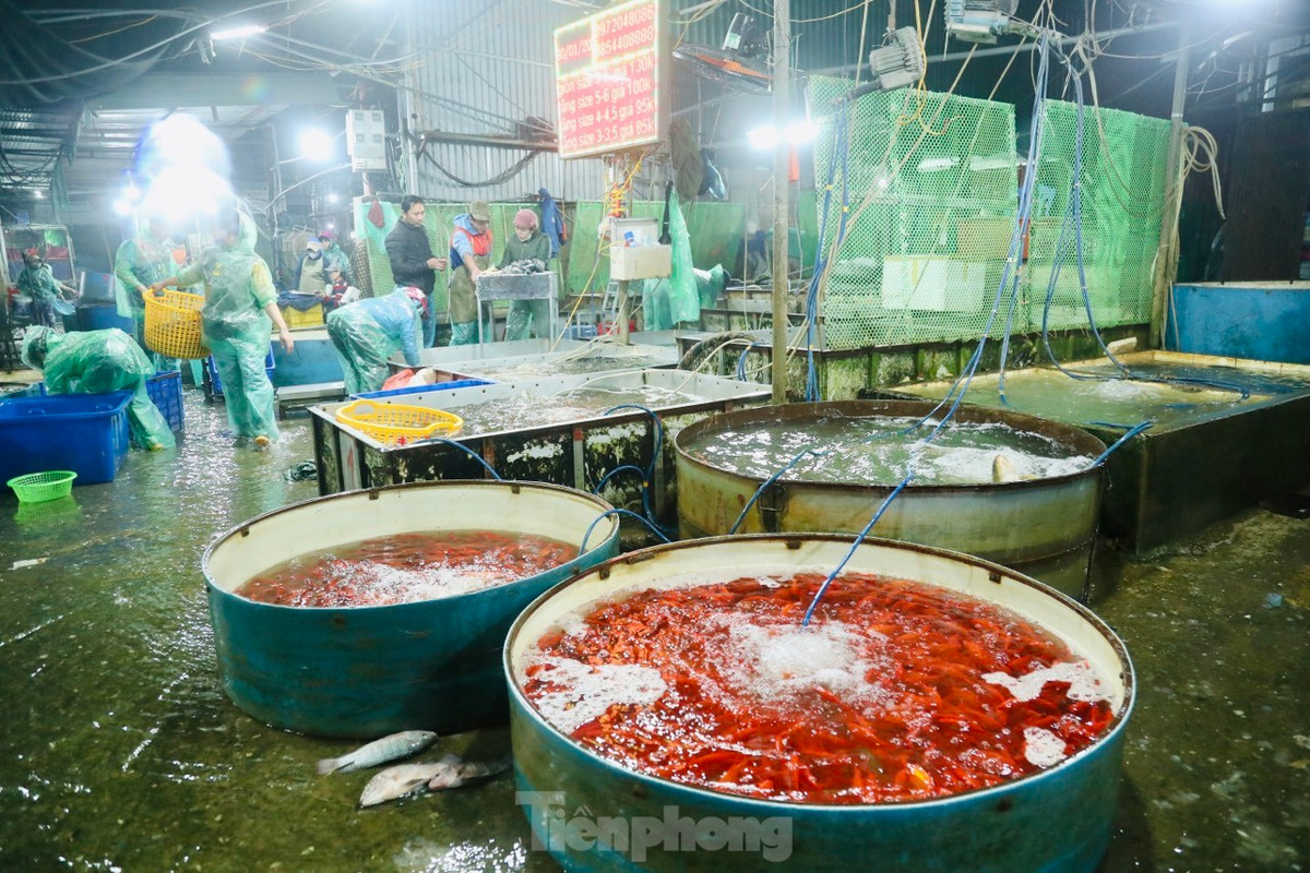 Gần đến 23 tháng Chạp, chợ cá Yên Sở ngập sắc đỏ trước ngày tiễn ông Táo về trời. Cá chép năm nay có mẫu mã đẹp, giá từ 60.000 đến 90.000đ/kg.