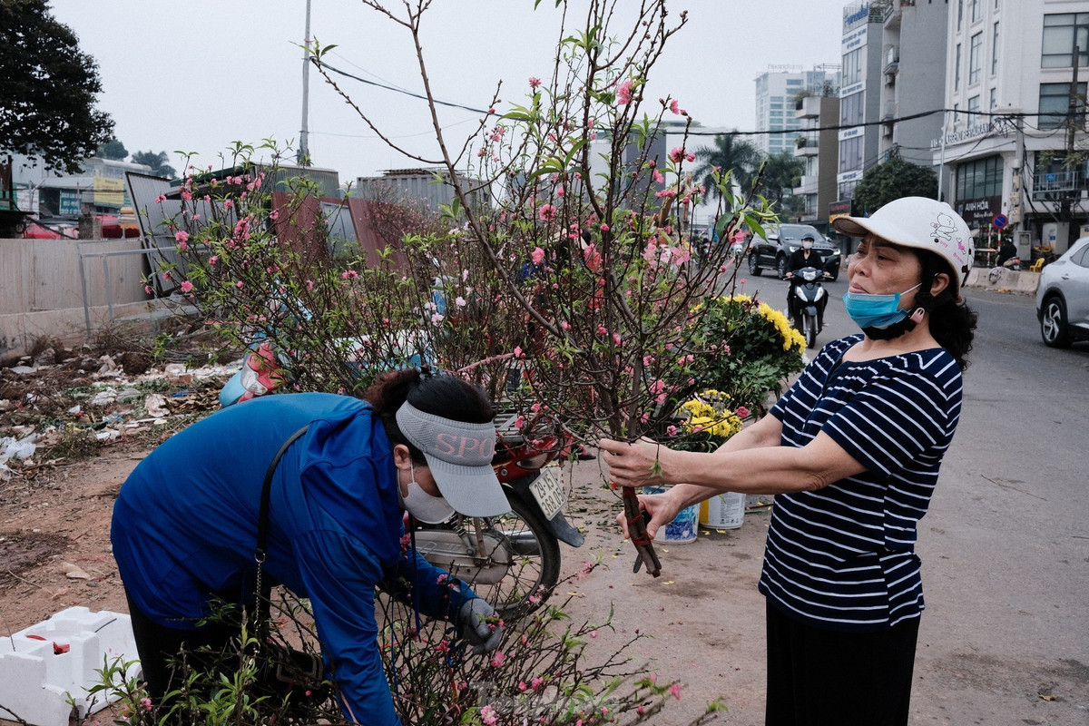 Ông Vũ Văn Tiến (65 tuổi, Hàng Bạc) cho biết: “Nay mua thêm đào để chuẩn bị cho ngày Rằm tháng Giêng cũng như thay thế cho cành đào đã cũ trước Tết. Tôi chơi đào quanh năm, sau Tết còn đào thì vẫn mua, giá lại được rẻ hơn”.
