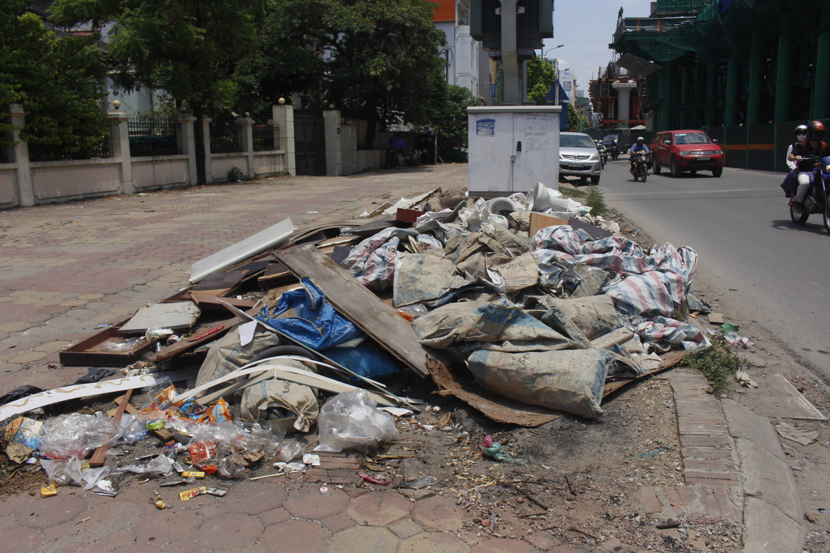 Trên vỉa hè ngổn ngang rác thải chưa được thu gom.