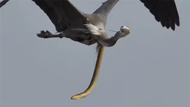 Có thể nhìn thấy rõ trong những bức ảnh của Davis, đó là hình của một diệc đầu đen đang bay trên bầu trời, nhưng điểm độc đáo nằm ở con vật trong khá loằng ngoằng đang cố chui ra khỏi bụng con chim.