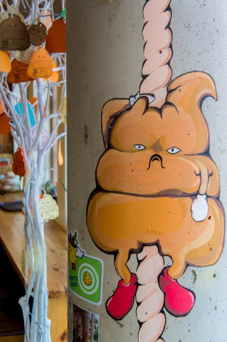 Quán cà phê ''phân người'' Poop Café nhìn từ bên ngoài tuy có bề ngoài bình thường nhưng bên trong lại có đầy đủ các thiết bị vốn chỉ có trong nhà vệ sinh như bồn cầu, giấy vệ sinh, cục phân… rất lạ mắt nhưng cũng khiến nhiều người “phát ớn”.