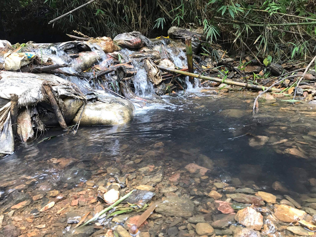 Cả 1 đoạn suối đầu nguồn bị ô nhiễm.