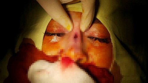 | Nạn nhân tố "nữ bác sĩ" phẫu thuật làm lòi xương mũi. |
