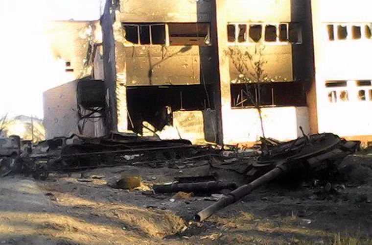 Chiếc T-64BV này bị bắn nát tới mức không còn rõ hình hài.