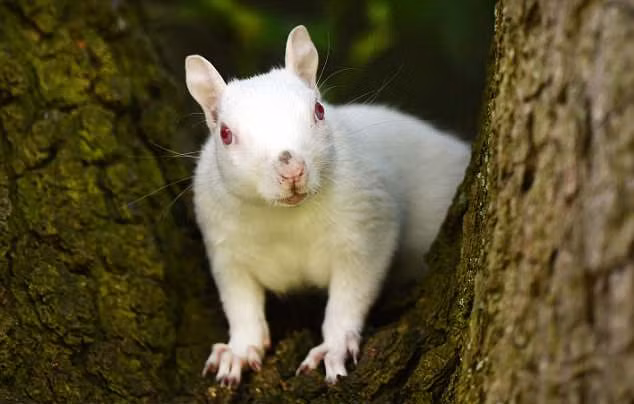 Trong những bức ảnh của Matthew Throup, con sóc bạch tạng có bộ lông trắng muốt, đôi mắt và chiếc mũi đỏ hồng, đặc trưng điển hình của những động vật mắc phải căn bệnh bạch tạng.