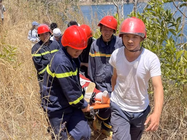 Tại hiện trường, lực lượng chức năng phát hiện một nữ du khách bị ngã dẫn đến gãy chân, không thể tự di chuyển, tinh thần khá hoảng loạn.