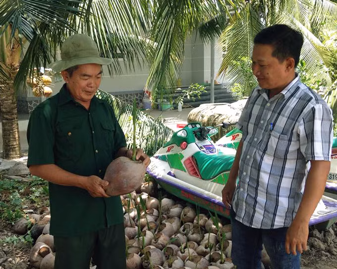 | Ông Thắng còn có thêm thu nhập từ việc bán dừa giống. (Ảnh: NQ). |