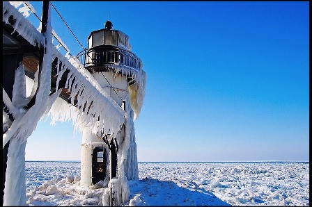 Có lẽ khi đến đây vào mùa đông, du khách sẽ khó mà nhận ra được những ngọn hải đăng. Băng giá đã biến chúng thành những tác phẩm điêu khắc đẹp đến kinh ngạc. Ngọn hải đăng mà Gill yêu thích là St. Joseph, cao 10,6m, được xây dựng vào năm 1844. Trong những cơn bão mùa đông, các con sóng cao đến 6m từ hồ Michigan đánh lên khiến ngọn hải đăng phủ một lớp băng dày.