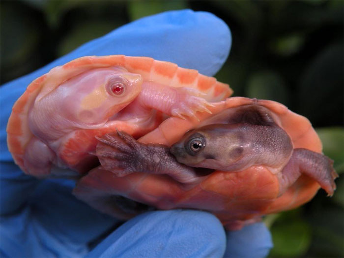 Thuộc nhiều chủng rùa khác nhau, thế nhưng khi mắc bệnh bạch tạng, chúng lại có vẻ ngoài rất kỳ lạ.