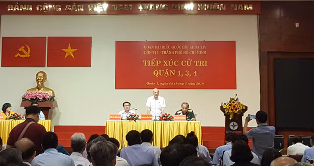 | Ông Phan Nguyễn Như Khuê thông báo lý do Chủ tịch nước Trần Đại Quang không có mặt tại buổi tiếp xúc cử tri sáng 5-5 - Ảnh: M.HOA |