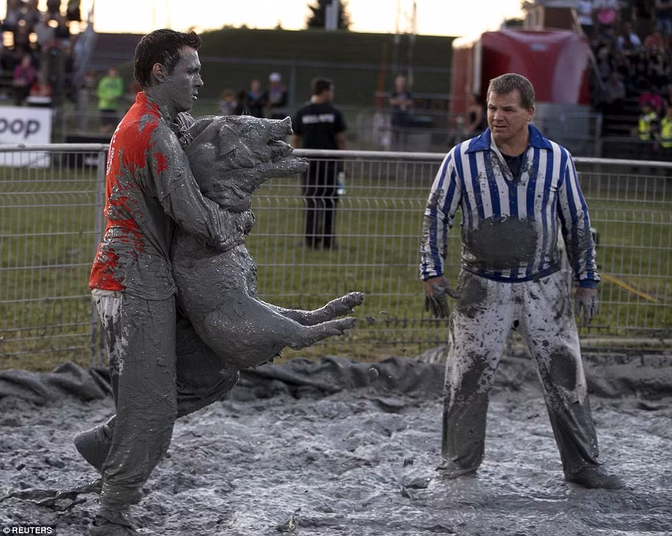 Cuộc thi bắt lợn dưới bùn này là một phần trong lễ hội Du Cochon ở Canada và được cho là một trong những cuộc thi truyền thống kỳ quái nhất thế giới.