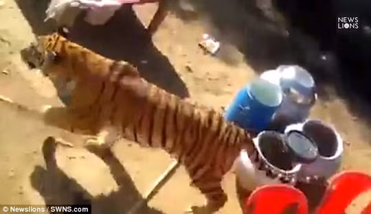 Khi xuất hiện, con hổ vằn trông rất bình tĩnh. Đối mặt với rất nhiều người nhưng con hổ không hề sợ hãi, nó đi vòng quanh khu vực đám cưới và dọa mọi người sợ hãi, hoảng loạn.