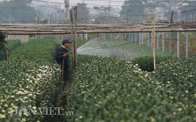 "Cây hoa được ươm trồng từ tháng 8, đến hiện tại đã có thể thu hoạch những bông hoa nở sớm mang ra chợ bán. Còn lại những nụ to để đến rằm tháng Chạp, cây nụ bé hơn để dành phục vụ Tết Nguyên đán", một người dân trồng hoa cho biết.
