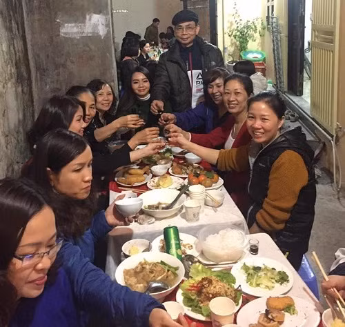 Chị T.H cũng cho biết thêm ban đầu mọi người định đặt cỗ cho đỡ rườm rà, nhưng sau một hồi hội ý thì thống nhất cùng chung tay làm cho ấm áp tình cảm.
