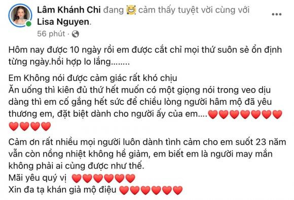Lâm Khánh Chi tiết lộ tình hình sức khỏe hiện tại sau khi phẫu thuật dây thanh quản.