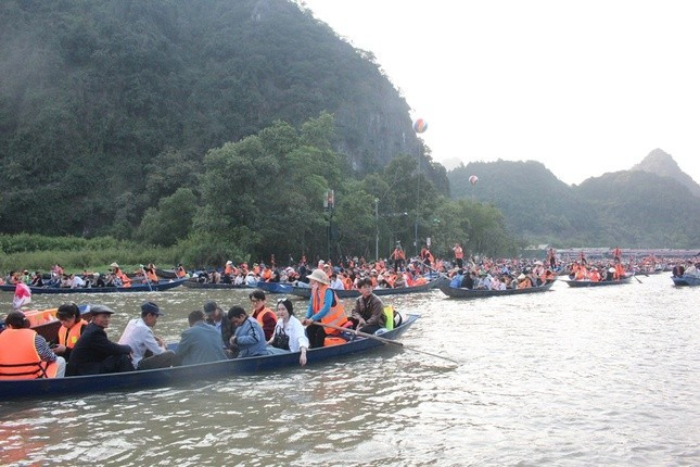 Du khách trẩy hội chùa Hương đầu xuân. Ảnh giacngo.vn