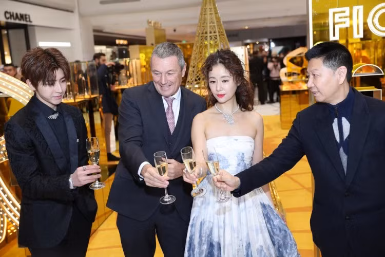 Mái tóc dài được uốn xù cộng cho bà xã Hoắc Kiến Hoa thêm nhiều tuổi.