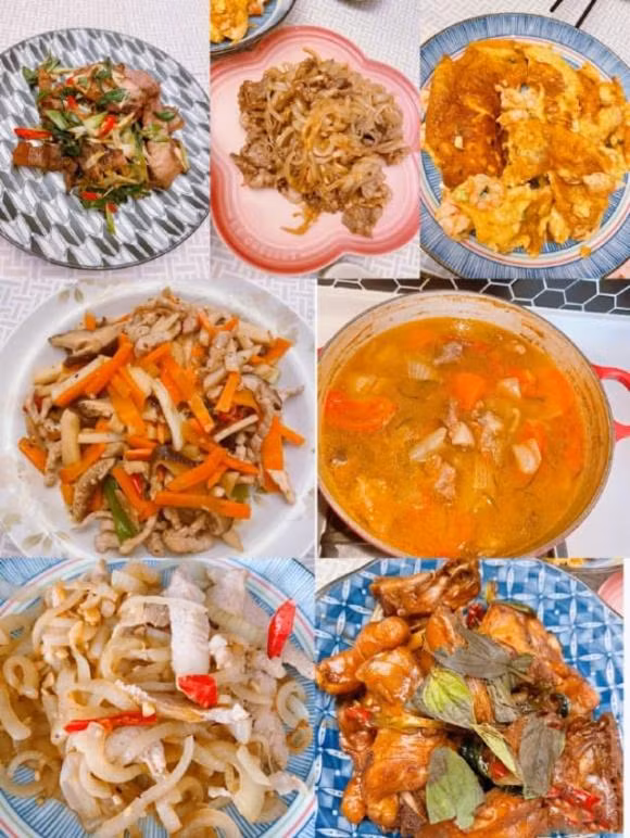 Trong ảnh, có đến hàng chục món ăn khác nhau do Lâm Tâm Như đích thân vào bếp, từ cánh gà sốt cay, thịt xào hành sả... cho đến các món canh, có thể thấy Lâm Tâm Như đã bỏ nhiều công sức vào việc chuẩn bị một thực đơn phong phú cho gia đình.