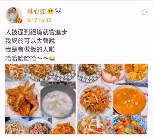 Chiều 17/5 vừa qua, Lâm Tâm Như đã đăng tải trên trên trang cá nhân thành quả khi vào bếp của mình kèm dòng chú thích: "Con người rơi vào đường cùng thì ai cũng sẽ tiến bộ cả thôi. Cuối cùng tôi cũng có thể nói to rằng: tôi là một đầu bếp". Những biểu tượng cảm xúc trong bài viết cho thấy tâm trạng phấn khích của cô khi khoe tài nấu nướng của mình.