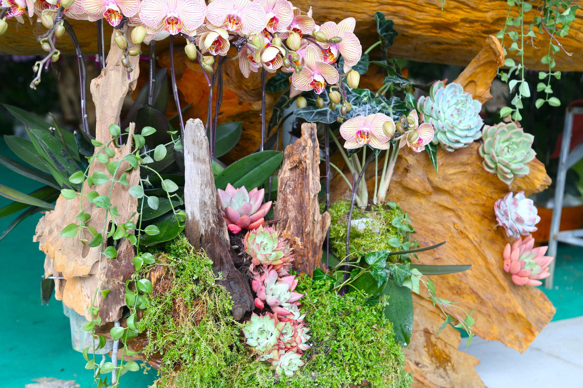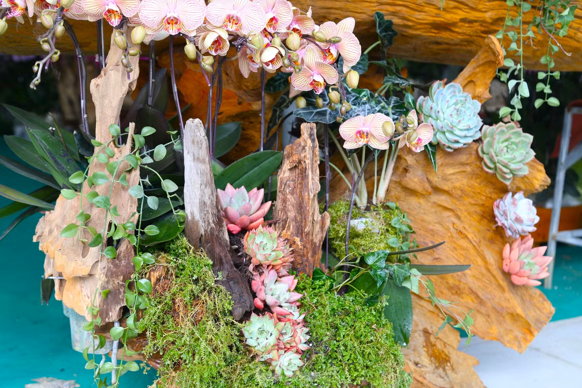 Lan hồ điệp cắm trên gỗ lũa đắt đỏ nhưng hút khách