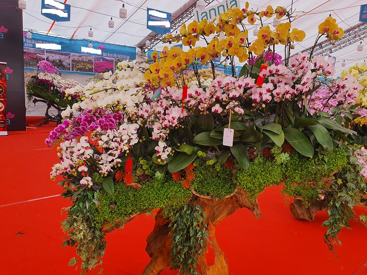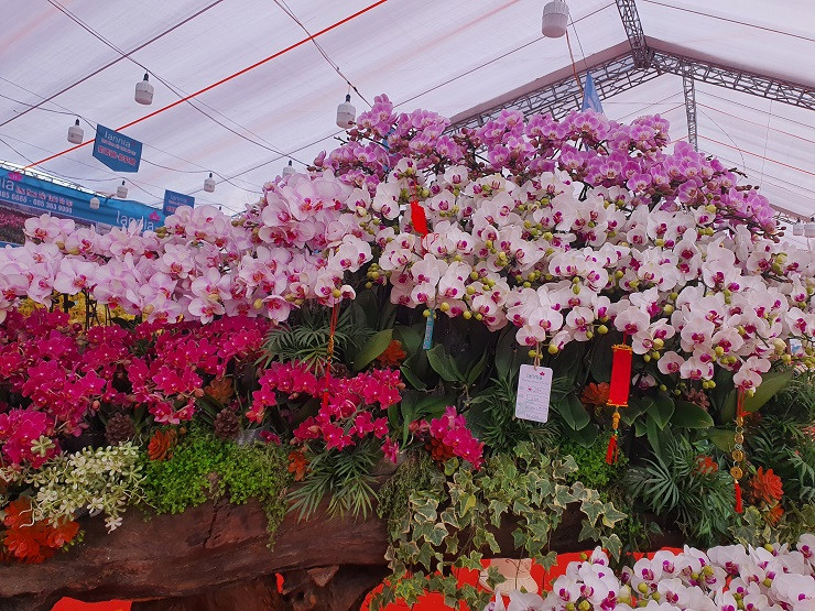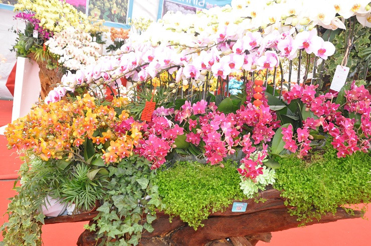 Tuy nhiên, thị trường lan hồ điệp năm nay ghi nhận sự góp mặt của những chậu lan hồ điệp được ghép trên gỗ lũa có giá lên đến hàng trăm triệu đồng. Nếu tính cành hoa được ghép, giá mỗi cành lên tới hàng triệu đồng.