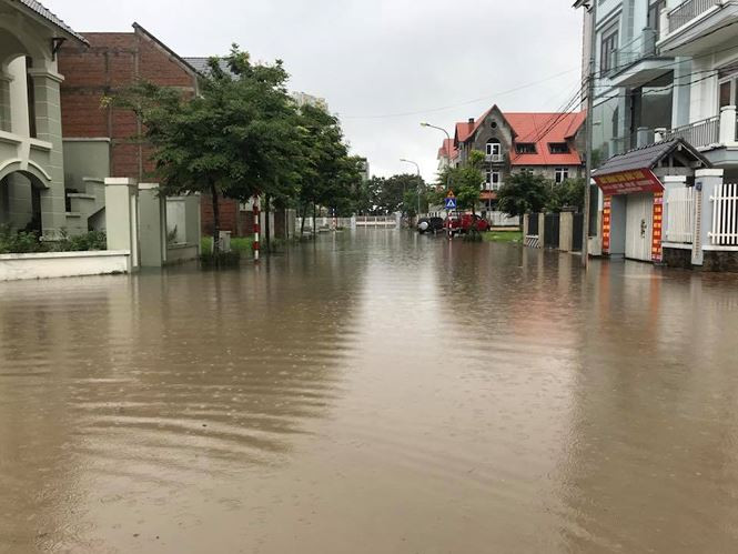 | Khu A của khu đô thị mới Lê Trọng Tấn – Geleximco với những dãy nhà phố liền kề và biệt thự có giá trị triệu đô nhưng ngập sâu sau trận mưa đêm 20 và rạng sáng ngày 21/7. (Ảnh. Tuấn Nguyễn) |