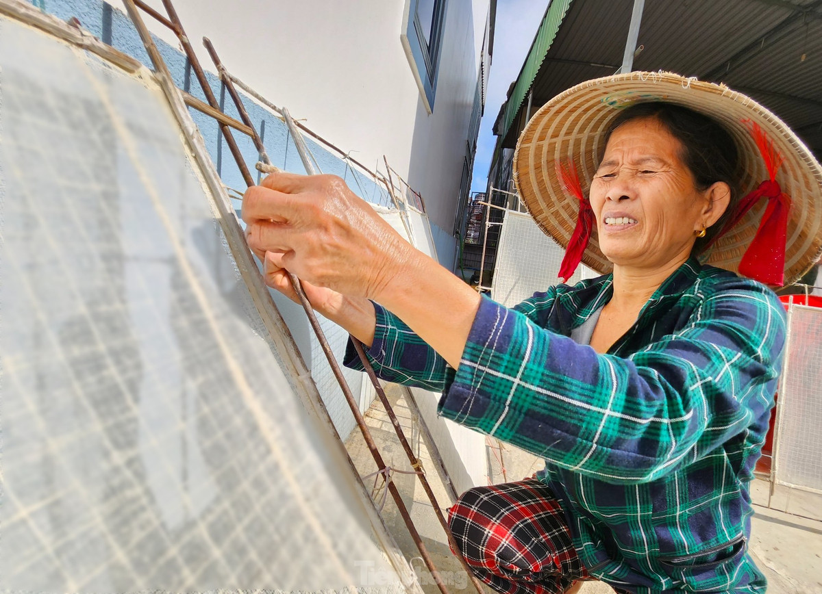 Sau nhiều giờ đồng hồ phơi nắng, gió, những tấm giấy mỏng đã được hình thành trên khuôn. Bà Hải cho hay công đoạn gỡ giấy ra không nặng nhọc nhưng rất quan trọng và phải thật khéo léo. Nếu người nào không quen việc, gỡ làm giấy rách thì coi như mất công sức làm cả buổi trời.
