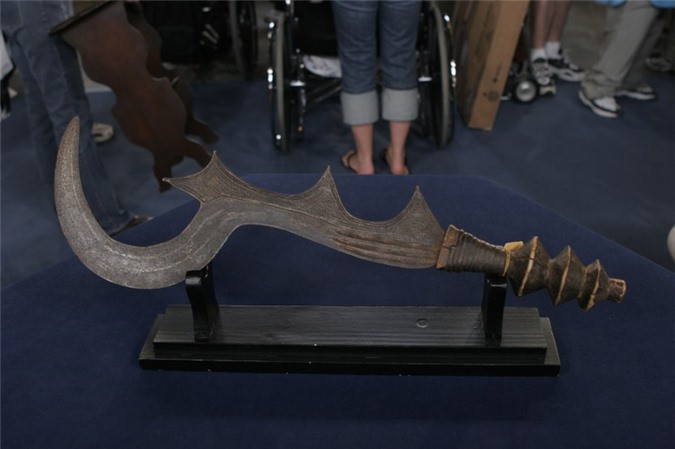 Tổng chiều dài thanh đao khoảng 66cm, hình dáng khá giống một lưỡi hái với các đường răng cưa phía dưới.