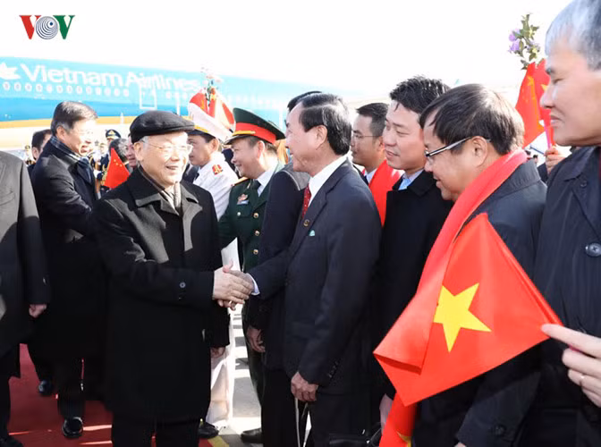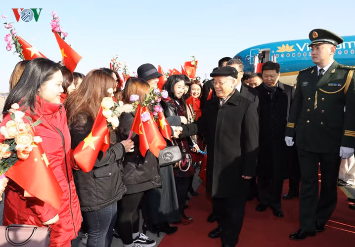 Lúc 13h10’ chiều 12/1 (theo giờ Bắc Kinh), chuyên cơ chở Tổng Bí thư Nguyễn Phú Trọng và Đoàn đại biểu cấp cao Việt Nam đã tới sân bay Quốc tế Bắc Kinh, Trung Quốc.