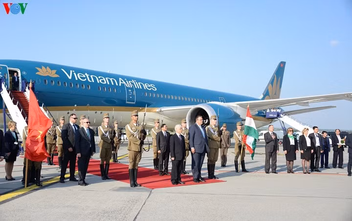 Lễ đón Tổng Bí thư Nguyễn Phú Trọng tại sân bay thủ đô Budapest, Hungary.