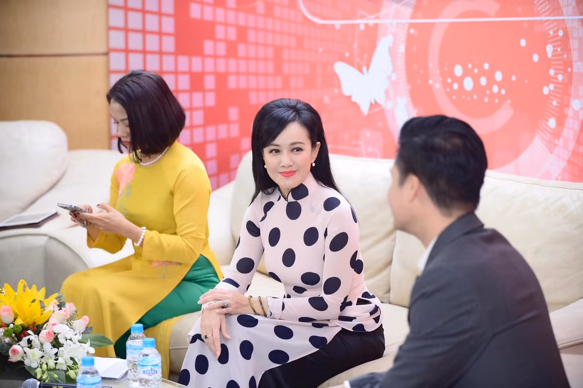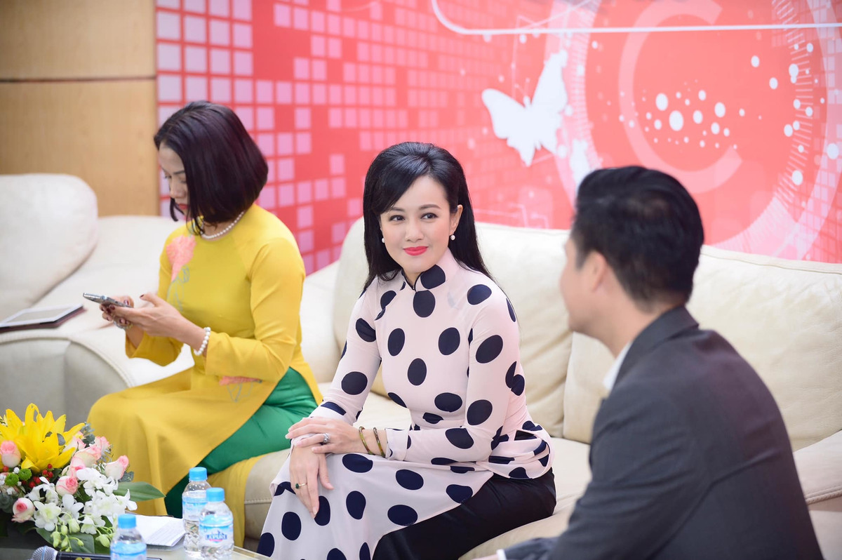 Thảo Vân đằm thắm với áo dài và hoa sen.