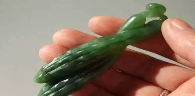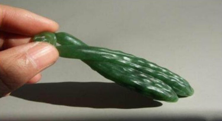 Viên đá này màu sắc, hình dạng giống hệt như 2 quả dưa chuột xoắn vào nhau. Lớp vỏ ngoài cùng của viên đá còn có các đường vân gồ lên giống hệt như dưa chuột thật. Ai mới nhìn lần đầu chắc chắn sẽ tưởng nhầm rằng đây là một tác phẩm điêu khắc nghệ thuật độc đáo. Kích cỡ của viên đá khá nhỏ, chỉ bằng ngón tay người lớn nhưng nhìn vô cùng bắt mắt.