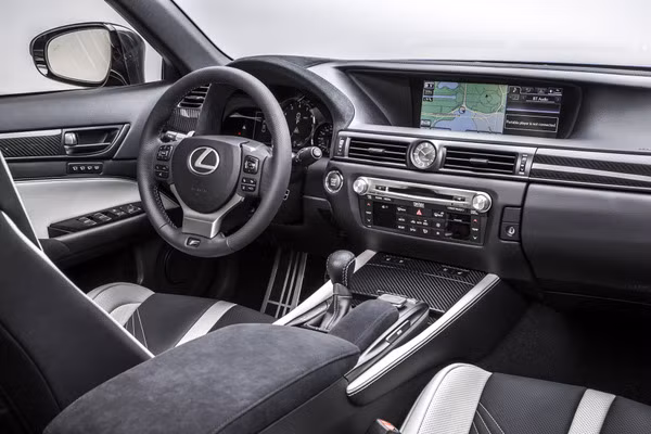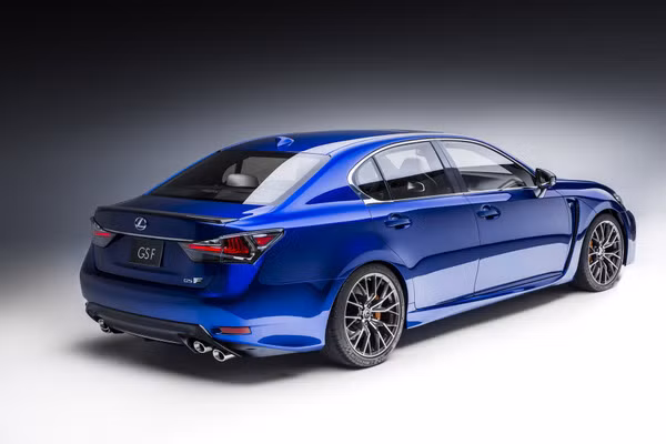 Điểm nổi bật nhất trong thiết kế ngoại thất của Lexus GS F 2016 là mặt trước hầm hố với lưới tản nhiệt lớn và đèn pha LED. Phần đuôi xe được thiết kế với hệ thống 4 ống xả chia đều 2 bên xe, cụm đèn hậu mờ, la-zăng hợp kim 19 inch kếp hợp với lốp 255/35R19 ở bánh trước và 275/35R19 ở bánh sau.