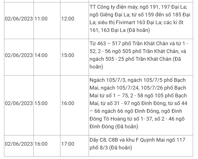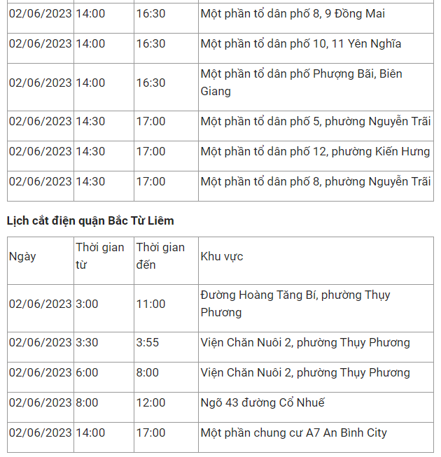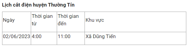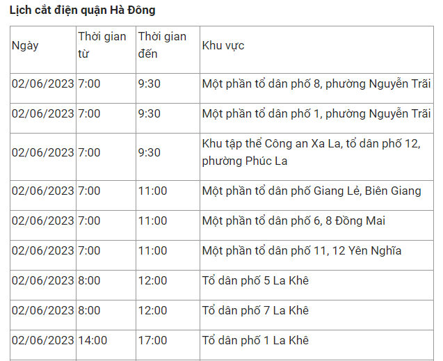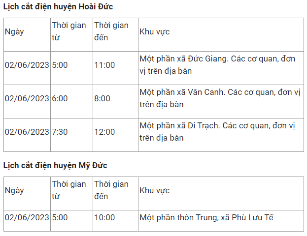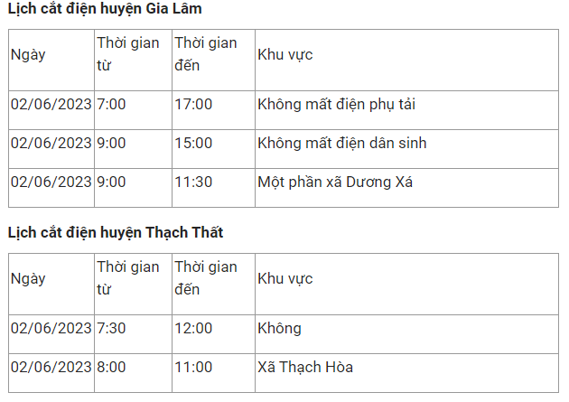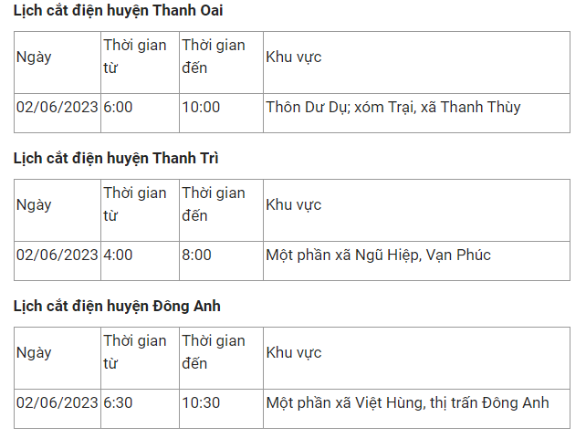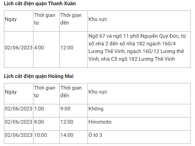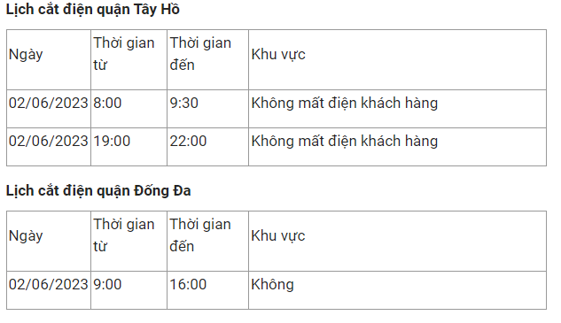 Tổng Công ty Điện lực TP Hà Nội đã có thông báo về lịch cắt điện trên toàn thành phố trong ngày 2/6. Độc giả nên nắm thông tin này để chủ động trong sinh hoạt, kinh doanh, sản xuất.