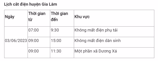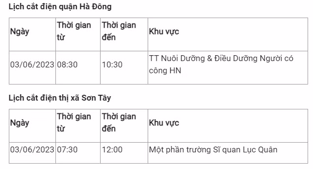 Tổng Công ty Điện lực TP Hà Nội đã có thông báo về lịch cắt điện trên toàn thành phố trong ngày 3/6. Độc giả nên nắm thông tin này để chủ động trong sinh hoạt, kinh doanh, sản xuất.
