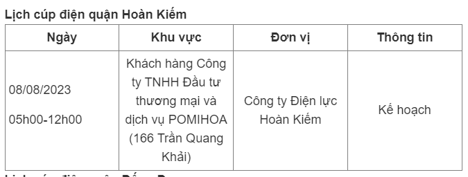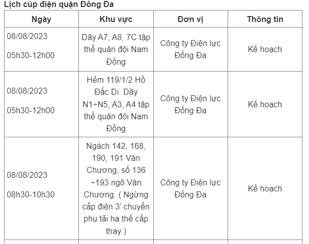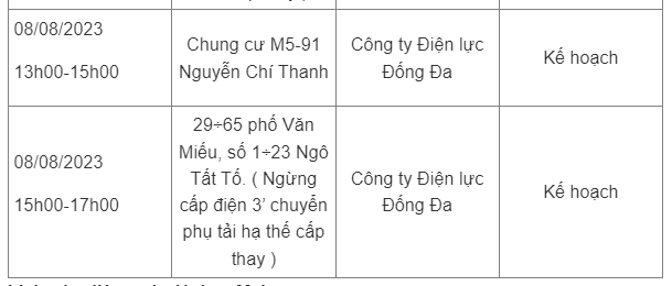 Lịch cúp điện Hà Nội hôm nay mới nhất theo từng khu vực được cập nhật từ cổng thông tin Tổng Công ty Điện lực Hà Nội ngày 8/8/2023.