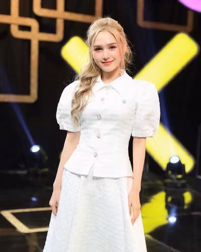 Nhan sắc của Xoài trong sự kiện này được khen ngợi hết lời. Cô chọn cho mình bộ váy cưới đơn giản, thướt tha, tôn lên vóc dáng yêu kiều cùng làn da trắng ngần.