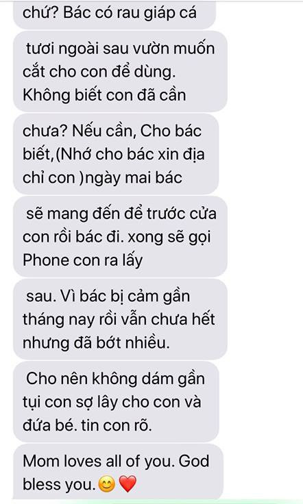 Trước tình cảm của mẹ chồng, Thanh Thảo hạnh phúc viết: "Có mẹ chồng như vậy thì còn gì bằng phải không các chị em. Ngưỡng mộ bác vì là người Hoa sống bên Mỹ mà nhắn tiếng Việt giỏi dễ sợ! Năm nay bác 80 tuổi rồi mà rất khoẻ khoắn và minh mẫn. Mình thật may mắn".