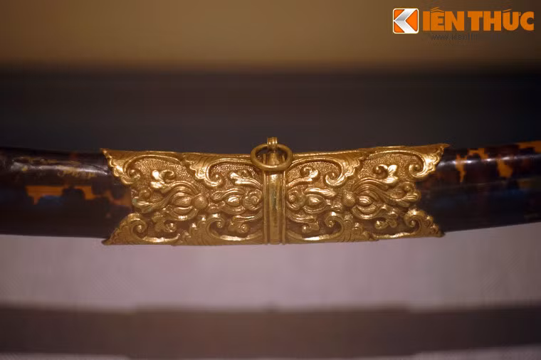 Vỏ kiếm bọc da đồi mồi, phần đầu, cuối và giữa vỏ được bọc vàng.