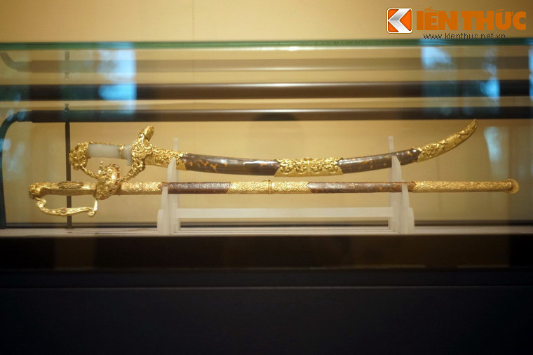 Thanh kiếm này cũng làm bằng sắt, vàng, ngọc, đồi mồi, trọng lượng là 1.250 gram.