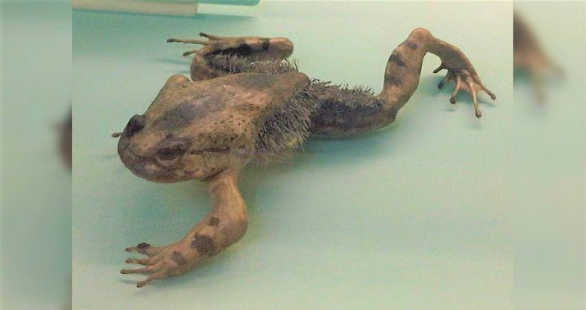 Còn được gọi là “ếch kinh dị”, loài ếch có lông có thể được nhận ra bởi các cấu trúc giống như lông dọc theo sườn và đùi của chúng. Lông thực ra là nhú bì với các động mạch được cho là giúp tăng diện tích bề mặt để hấp thụ oxy.