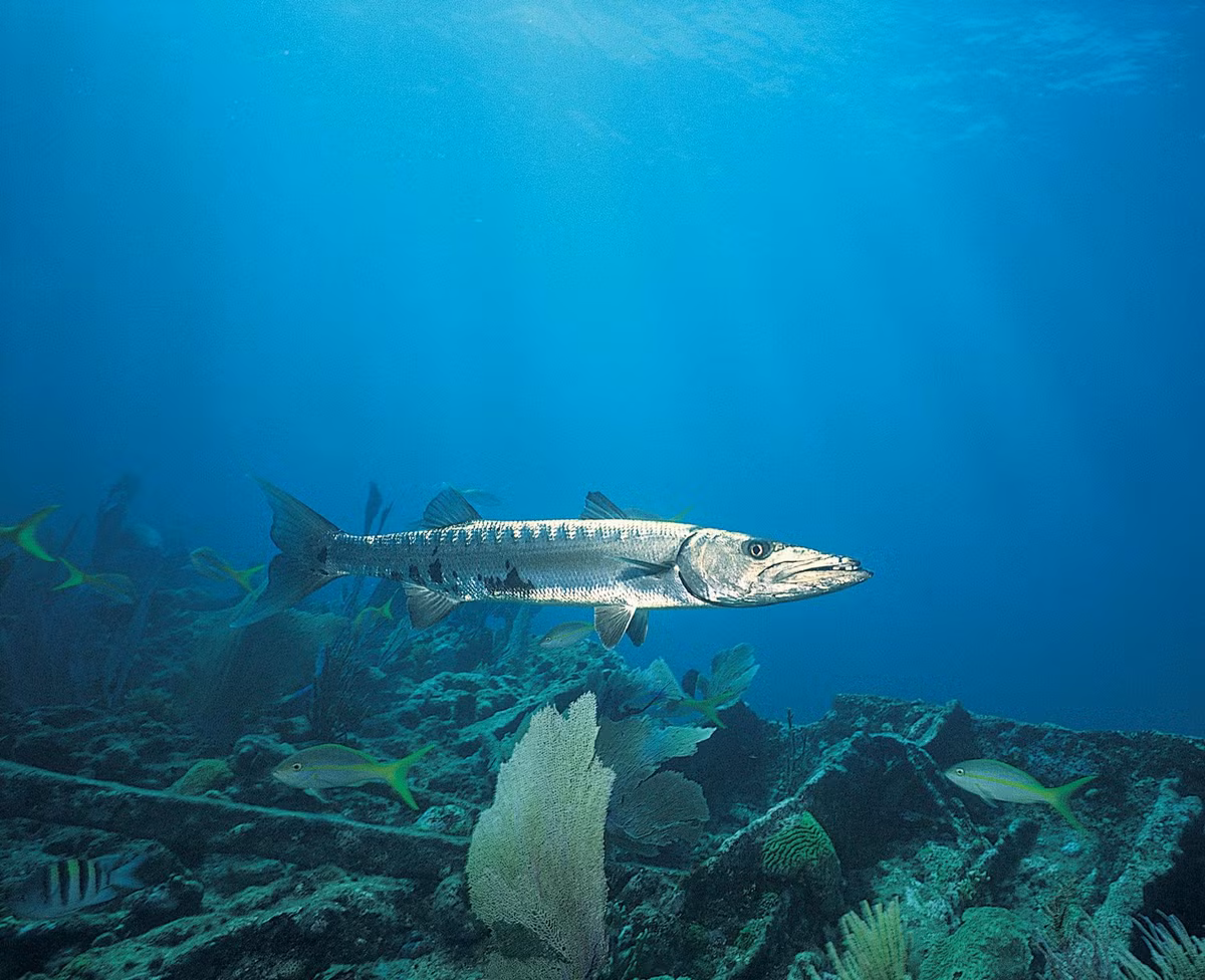 Ấn tượng đầu tiên về cá nhồng là ngoại hình “sát thủ”, thân bạc ánh kim, đầu nhọn, miệng rộng với những chiếc răng lớn, nhọn và hơi cong vào trong. Những chiếc răng này không chỉ để giữ mà còn để xé con mồi, giúp cá nhồng trở thành một trong những kẻ săn mồi hiệu quả nhất trong đại dương. Một số loài lớn, như cá nhồng lớn (great barracuda), có thể dài tới gần 2 mét.