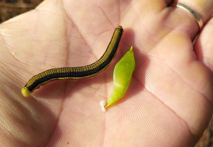 Con sâu và con nhộng sâu muồng. (Ảnh: Hoàng Đức Độ).