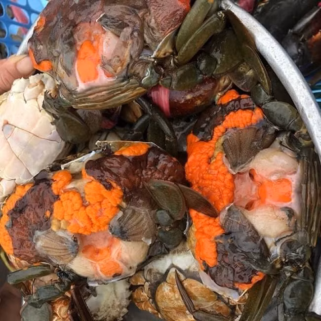 “Cua gạch son là cua cái trưởng thành có trọng lượng từ 150-850gr, sau khi giao vĩ, trứng cua được thụ tinh và phát triển, chuyển sang màu đỏ được gọi là gạch son. Gạch của chúng vừa thơm, vừa bùi và béo ngậy nên giá của cua gạch thường cao hơn giá cua thịt cùng thời điểm”, anh Giang cho hay.