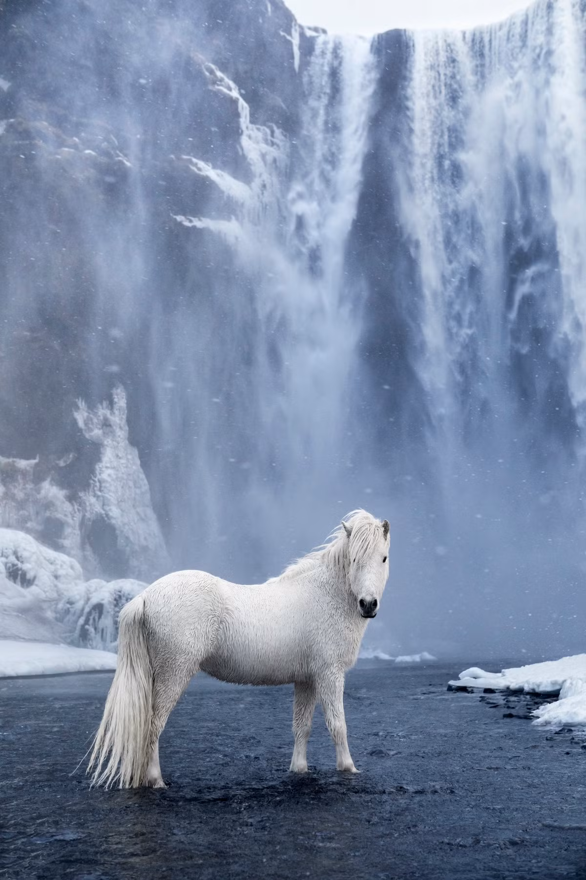 Đây là giống ngựa duy nhất có nhiều kiểu di chuyển khác nhau như đi, chạy bộ, phi nước đại, chân không chạm đất. Số lượng ngựa Iceland trên thế giới khoảng 250.000 con, 40% trong đó sống tại băng đảo. Drew Doggett chia sẻ để hoàn thành ý tưởng bộ ảnh, nhiếp ảnh gia đã dành hơn 3 tháng lên kế hoạch. Thời tiết phức tạp là trở ngại lớn trong quá trình thực hiện.