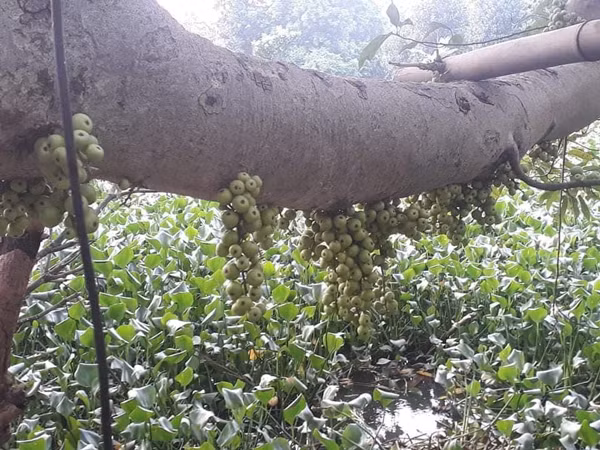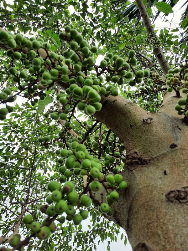 Cây sung nhiều năm tuổi của nhà chị Huyền My ra quả sai trĩu, năm nào chị cũng hái để bán.