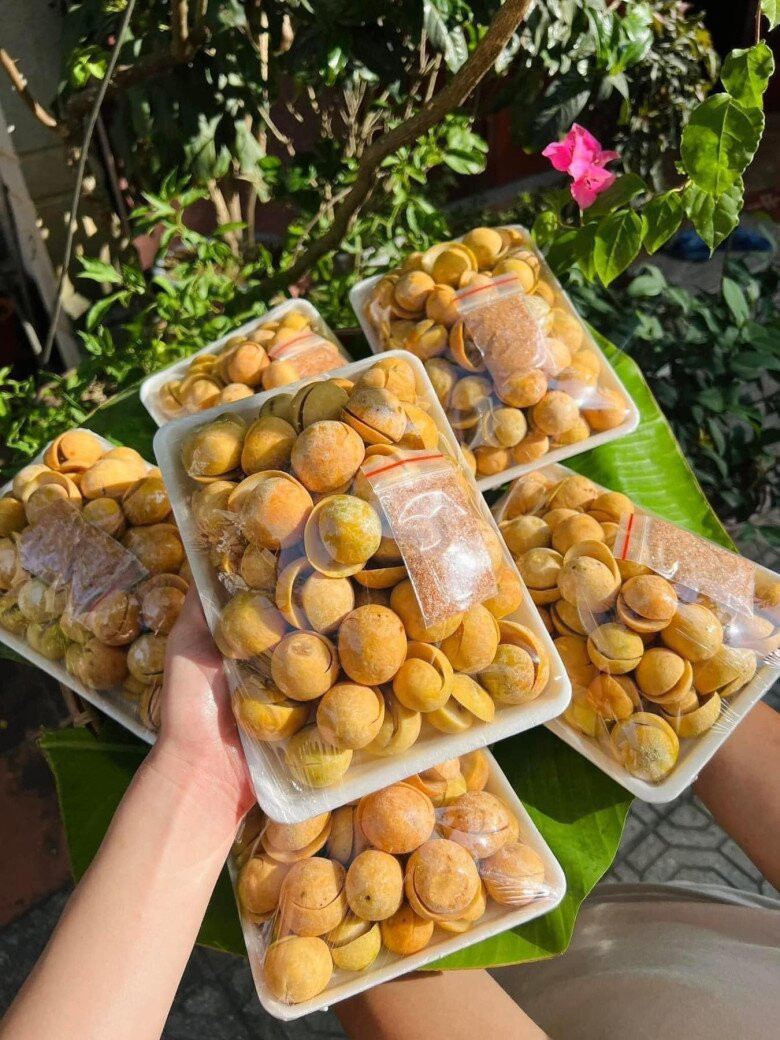 Sấu chín dầm với đường, muối ớt tạo nên món quà vặt có hương vị riêng